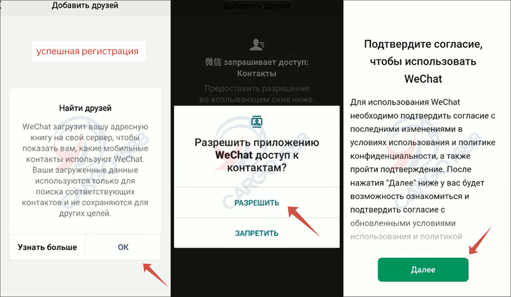 Разрешите WeChat доступ к контактам и отправке уведомлений.