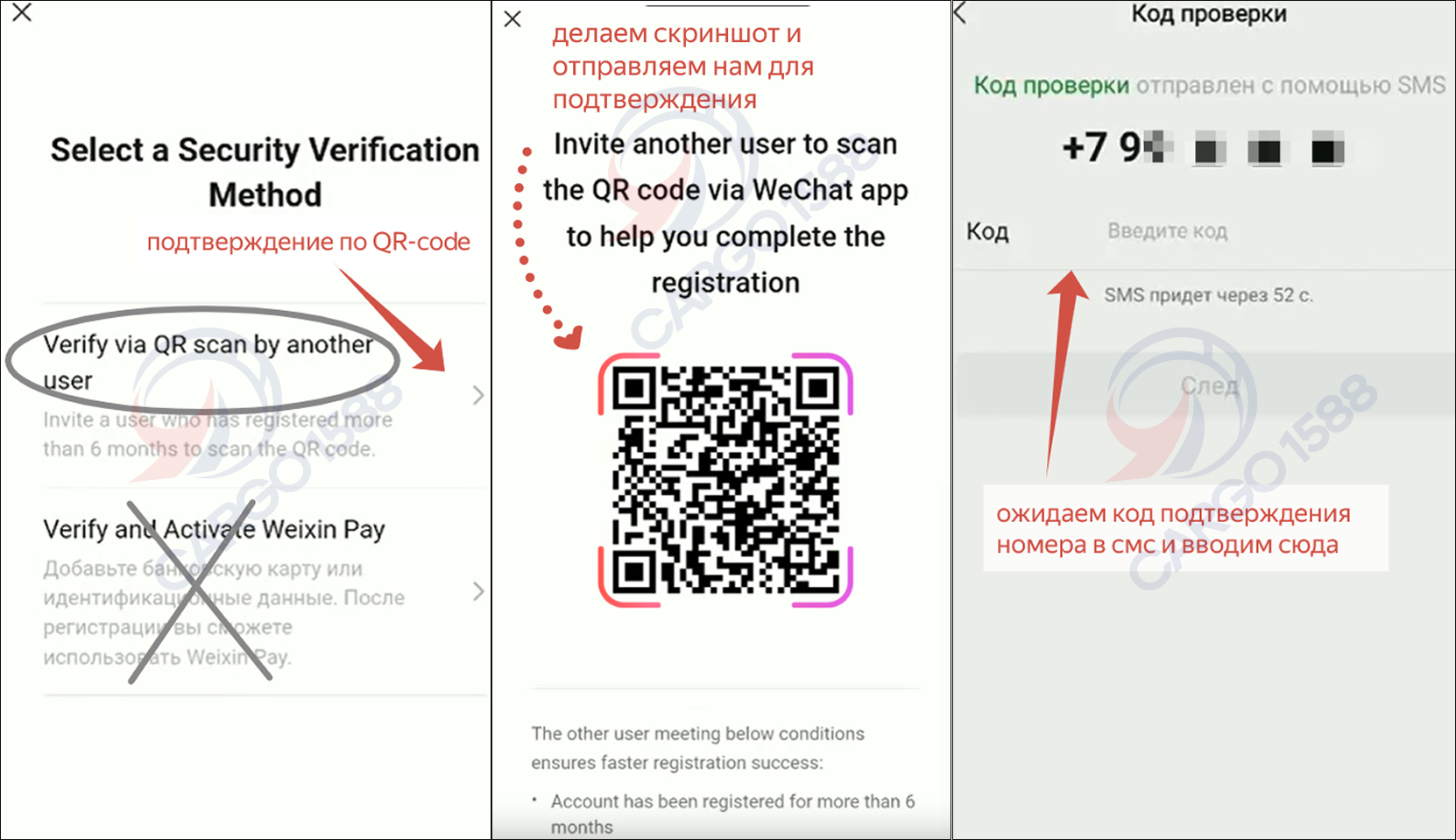 Четвертый шаг - Регистрация в WeChat QR-код и проверка номера телефона.